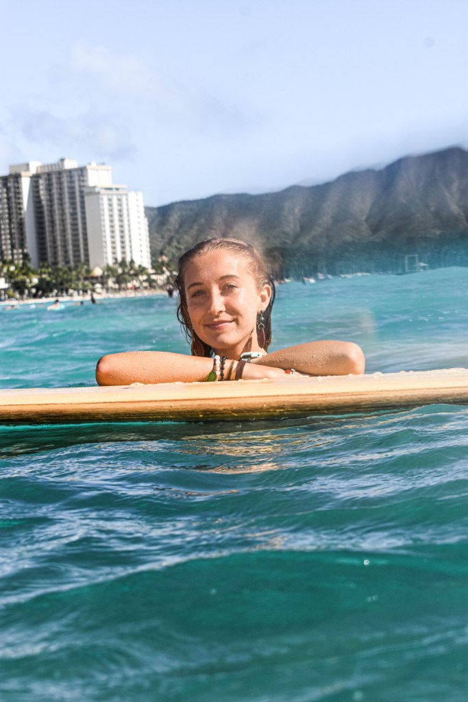 Kaya chose an eco-friendly board so that she could live/surf while making a less negative impact on the environment.