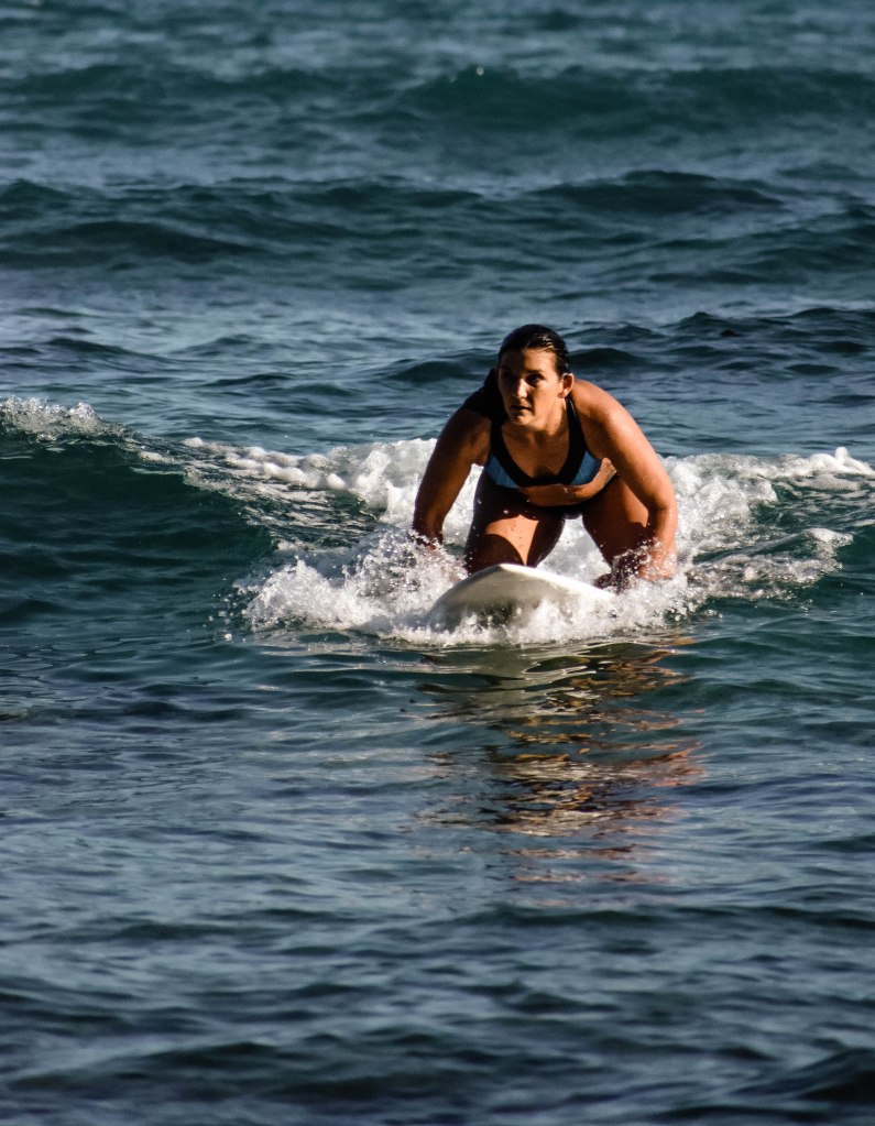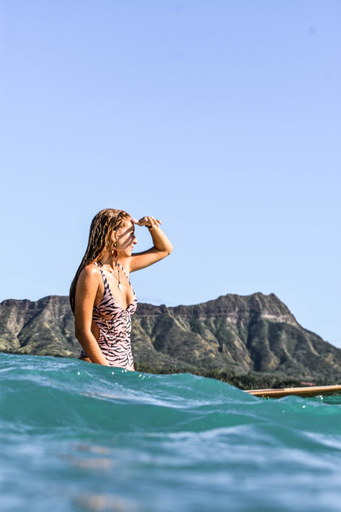 Kaya Milos, 18 was pretty much born in the water. Surrounded by a family of surfers, she jumped in the water and joined the family craft six years ago.